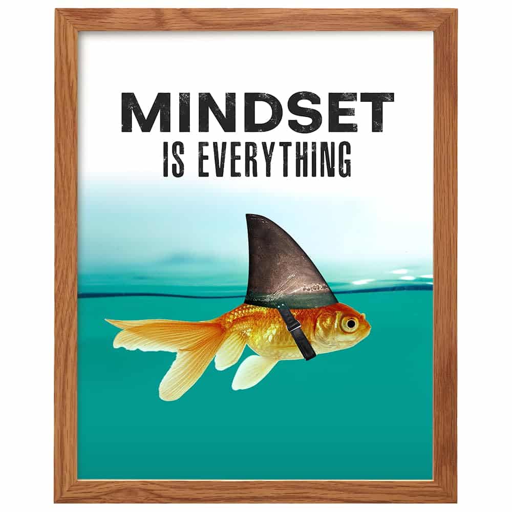 Mindset is Everything FRAMED – Motivational Wall Art Poster for Home, Office – Gift for Entrepreneur, Student, Men – Inspirational Decor – Uplifting Self-Improvement Positive Quote – Shark Goldfish