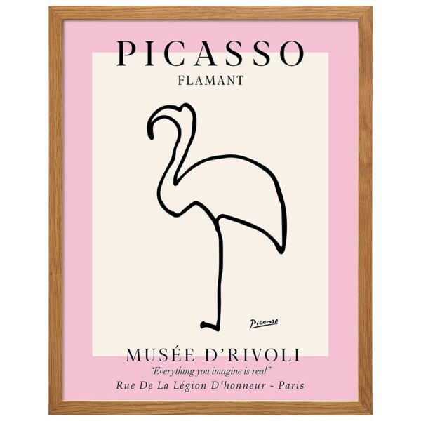 Mid-Century Modern Art 11×14 FRAMED – Minimalist Line Art Wall Decor for Modern Home – Abstract Gallery Wall Print, Tropical Beach House Museum Poster, Contemporary Aesthetic Room Decor, Pink Flamingo – B0DZHZX3CK